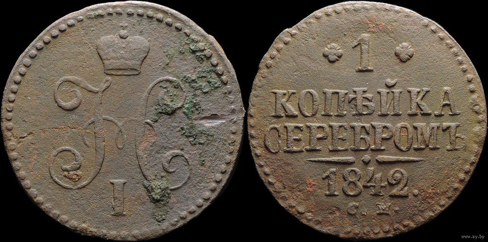 1 копейка 1842 СМ, Отличная! С 1 Рубля! Смотрите другие лоты!