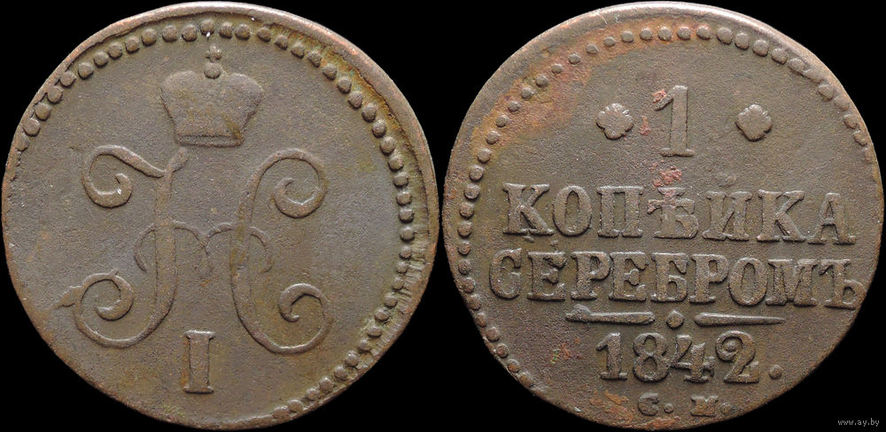 1 копейка 1842 СМ, Отличная! С 1 Рубля! Смотрите другие лоты!