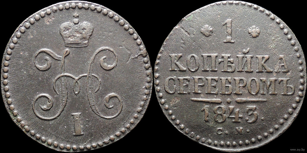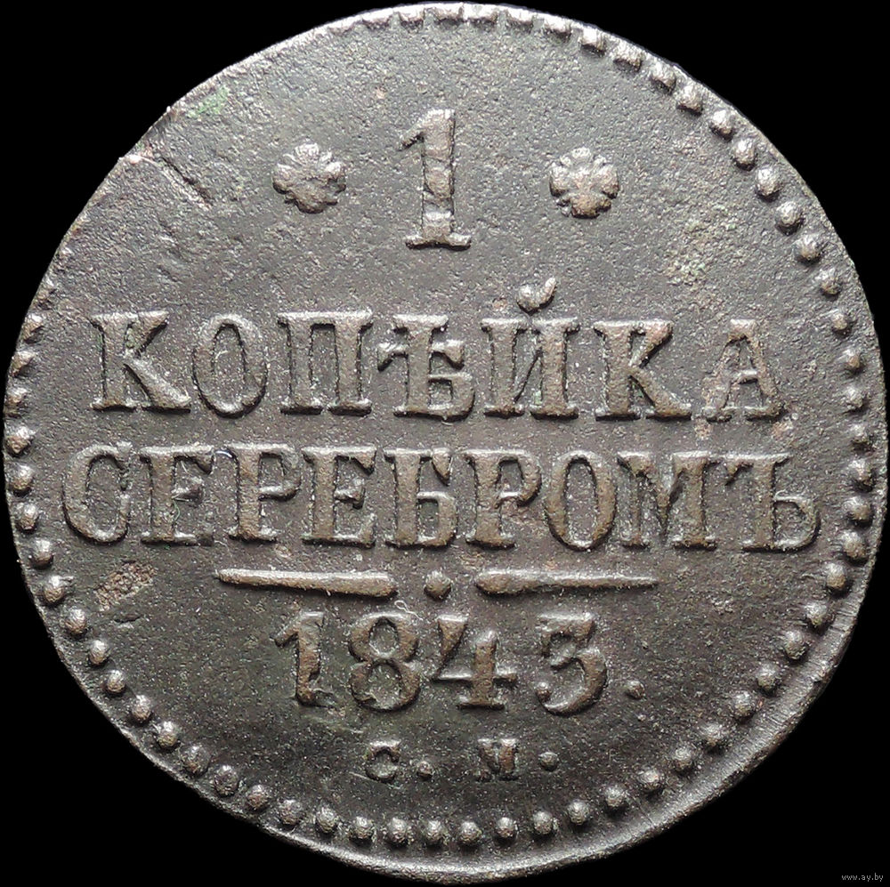 1 копейка 1843 СМ, Отличная! С 1 Рубля! Смотрите другие лоты!