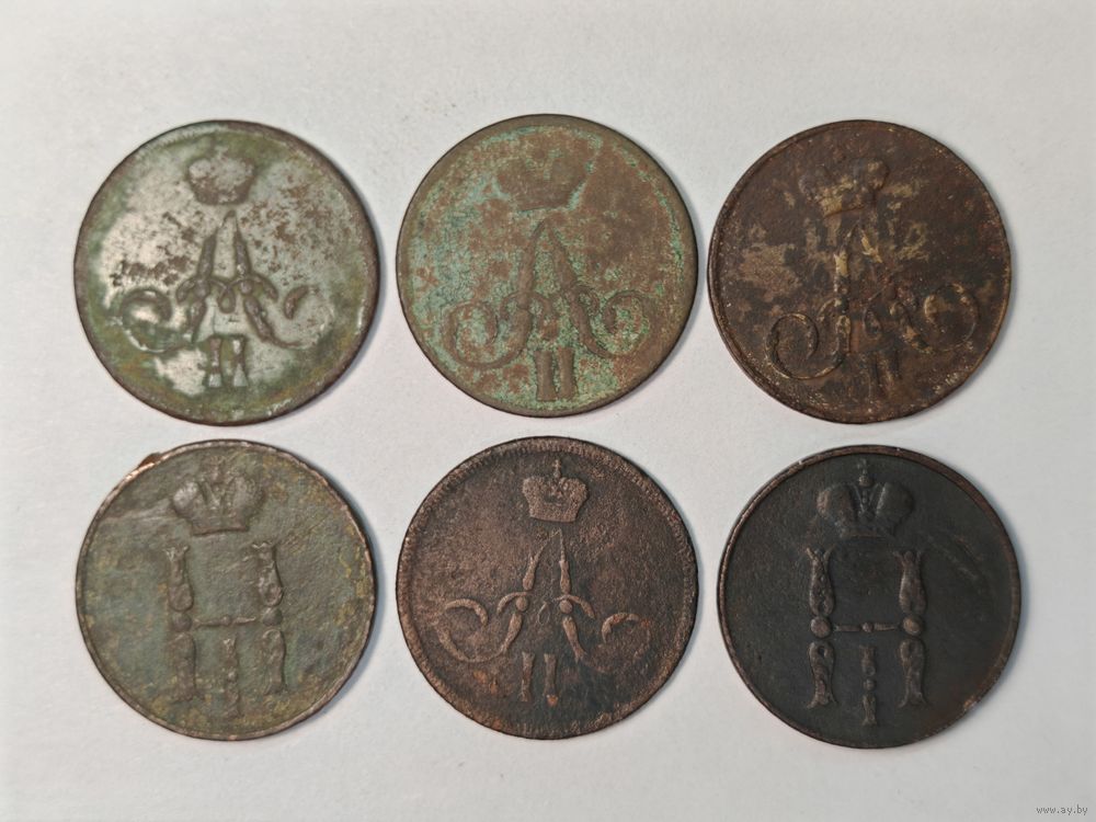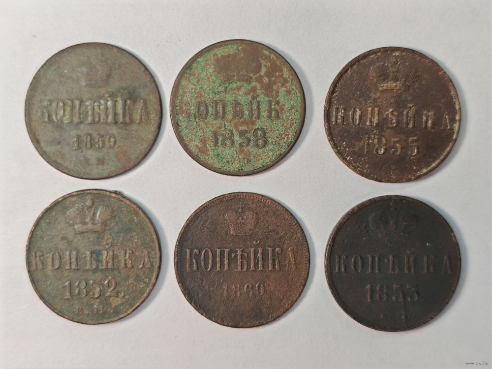 1 копейка 1852-1860 года. Одним лотом 6 шт. С рубля