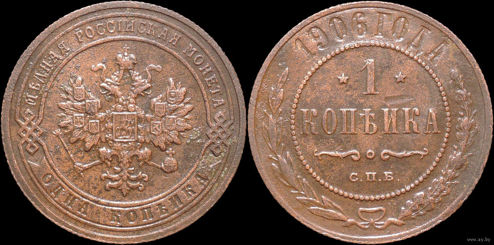 1 копейка 1906, Отличная! С 1 Рубля! Смотрите другие лоты!