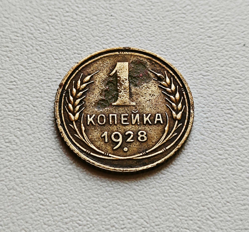 Перед нами монета 1 копейка, выпущенная в 1928 году, в 1928 году введена в обращение.