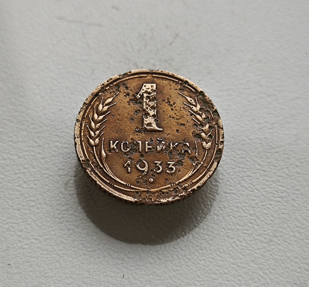 Перед нами монета 1 копейка, выпущенная в 1933 году, в 1933 году введена в обращение.