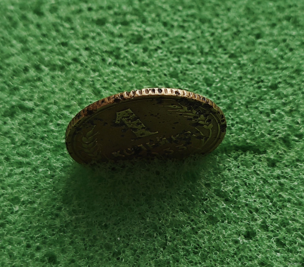 Перед нами монета 1 копейка, выпущенная в 1933 году, в 1933 году введена в обращение.