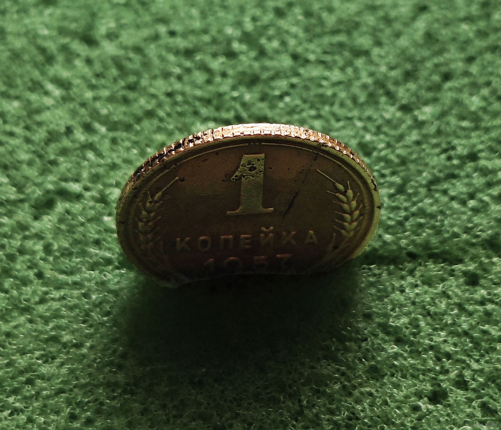 Перед нами монета 1 копейка, выпущенная в 1957 году, в 1957 году введена в обращение.