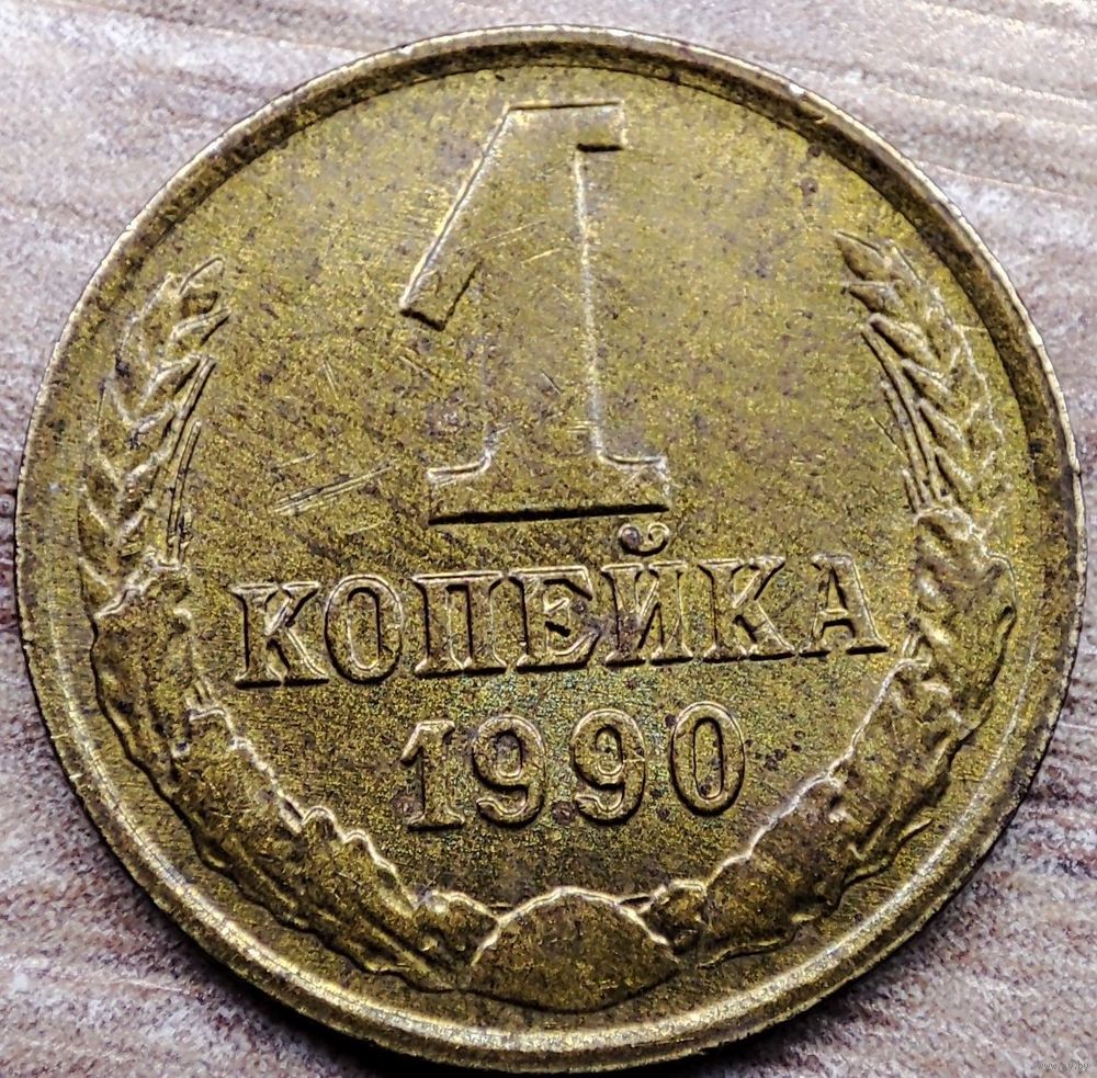 Монета номиналом 1 копейка 1990 СССР в количестве - 1шт (немагнитная). На аверсе "два вырванных живьём куска"