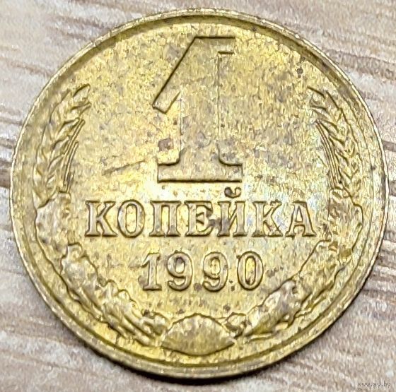 Монета номиналом 1 копейка 1990 СССР в количестве - 1шт (немагнитная). На аверсе "два вырванных живьём куска"