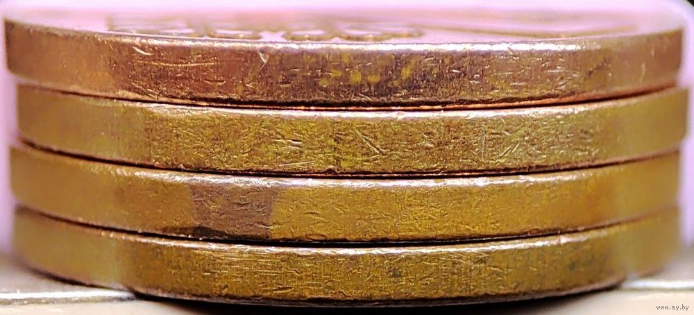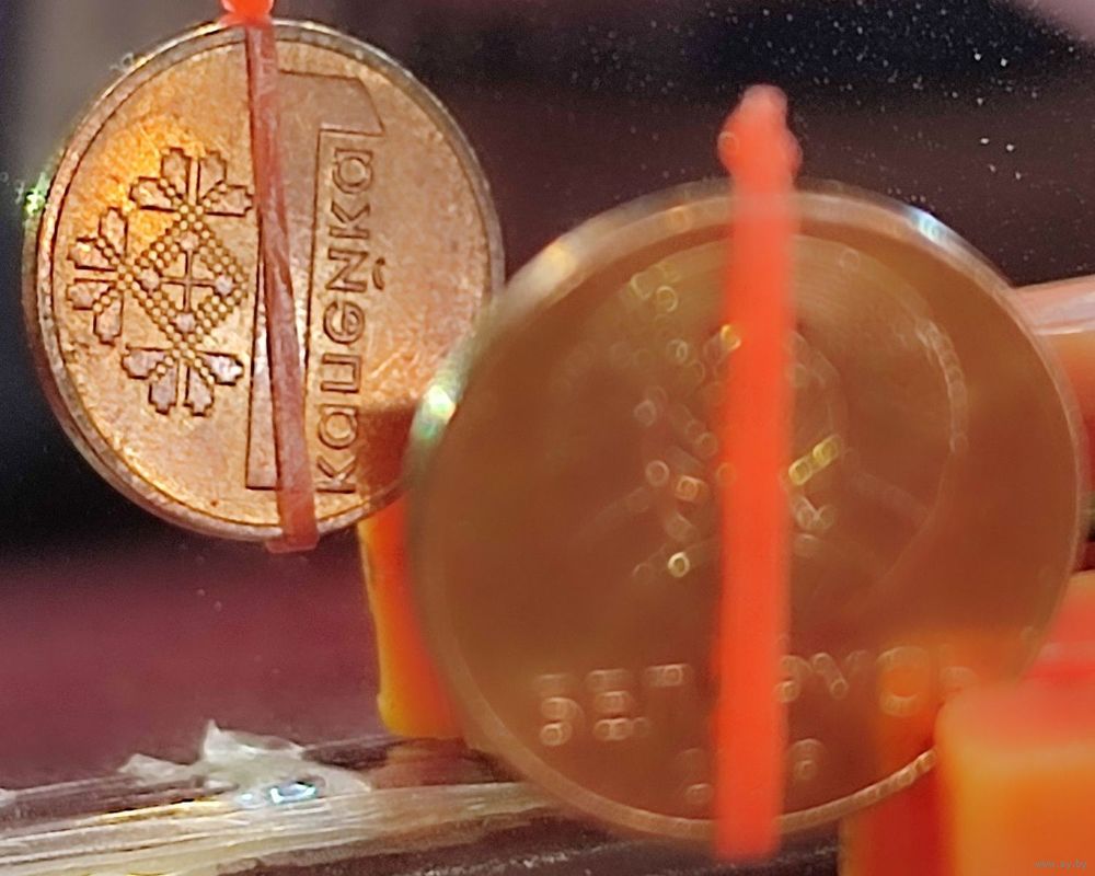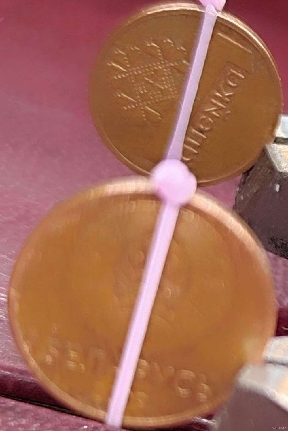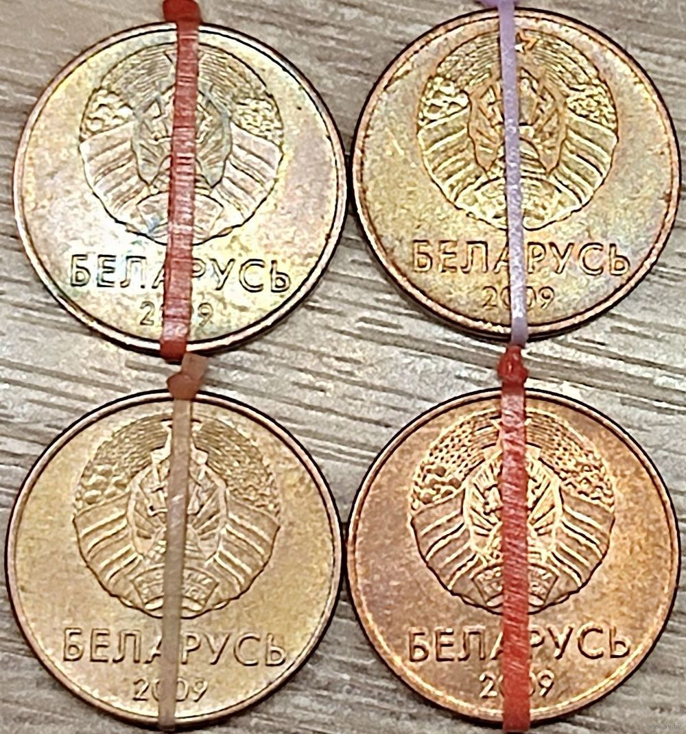 Монета номиналом 1 копейка 2009 РБ в количестве - 4шт (все магнитные). Несоосность аверса и реверса около 10° у всех четырёх монет