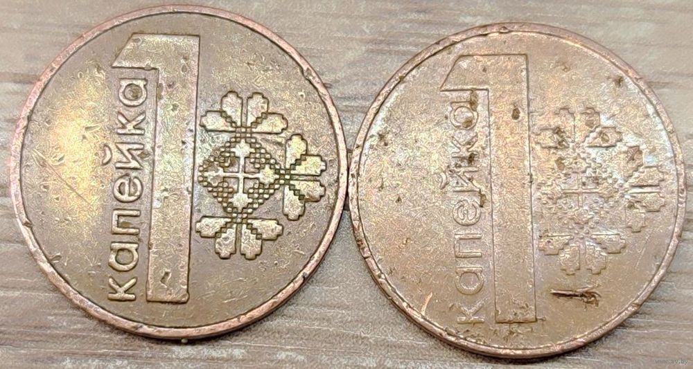 1 копейка 2009 Республика Беларусь в количестве-2шт, все магнитные. Засор штемпелей аверса и реверса обеих монет
