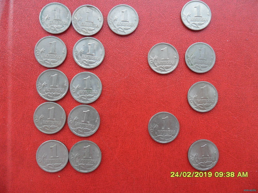 1 копейка России - набор из 17 монет, все разные (цена за все)