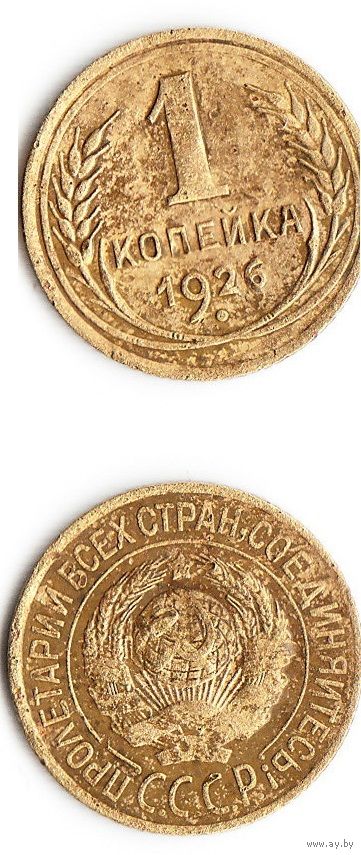 1 копейка СССР 1926 года, состояние отображено на скане.