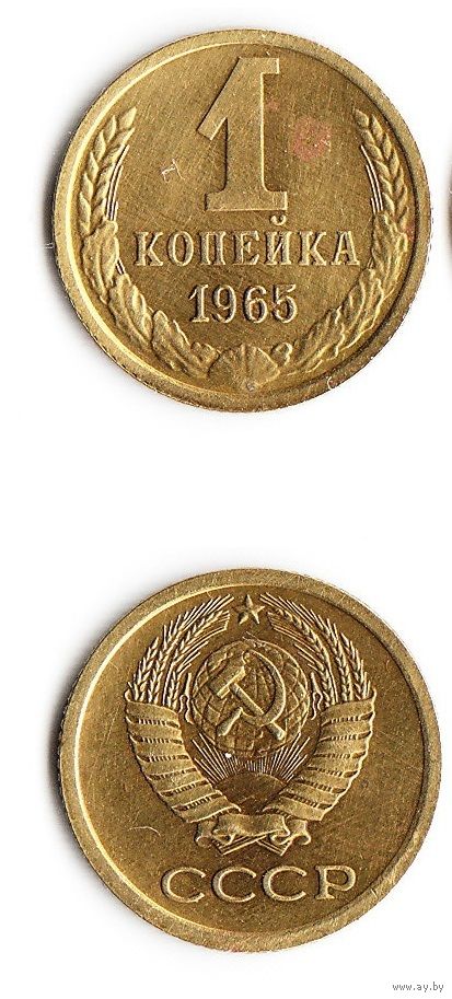1 копейка СССР 1965 года, состояние отображено на скане.