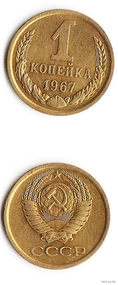1 копейка СССР 1967 года, состояние отображено на скане.