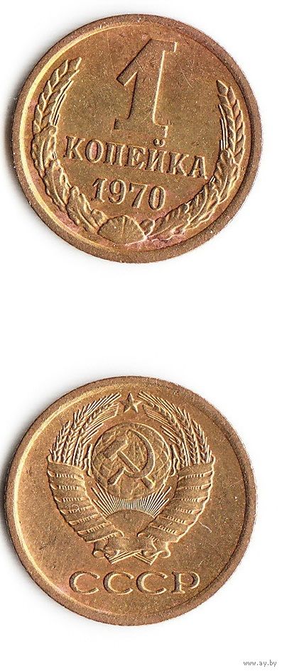 1 копейка СССР 1970 года, состояние отображено на скане.