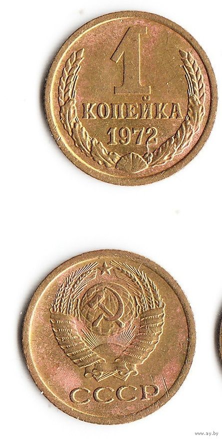 1 копейка СССР 1972 года, состояние отображено на скане.