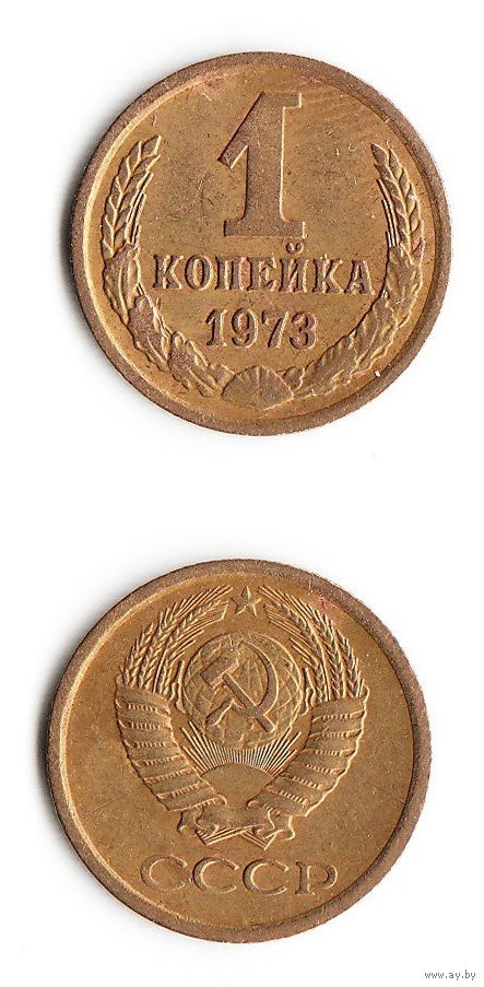 1 копейка СССР 1973 года, состояние отображено на скане.