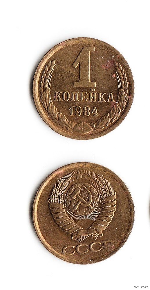 1 копейка СССР 1984 года, состояние отображено на скане.