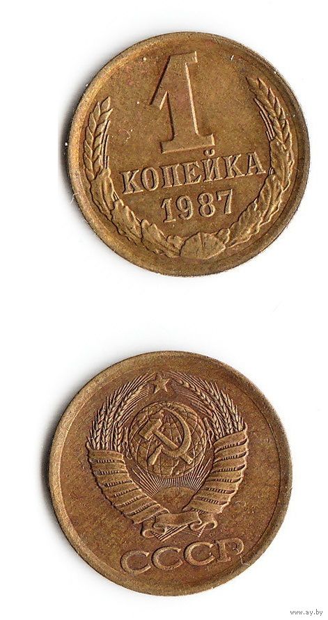 1 копейка СССР 1987 года, состояние отображено на скане.