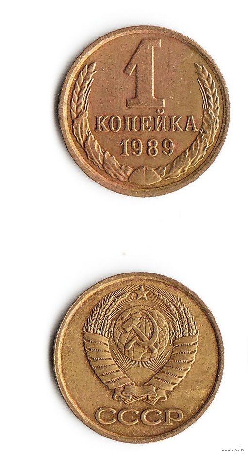 1 копейка СССР 1989 года, состояние отображено на скане.