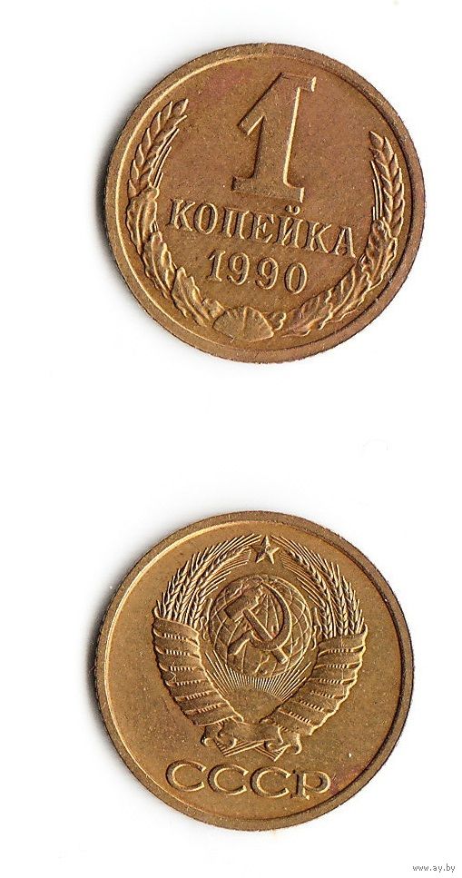 1 копейка СССР 1990 года, состояние отображено на скане.