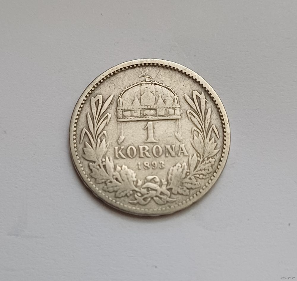 1 крона. 1893г. 835пр., серебра. Франц Иосиф I. Венгрия.