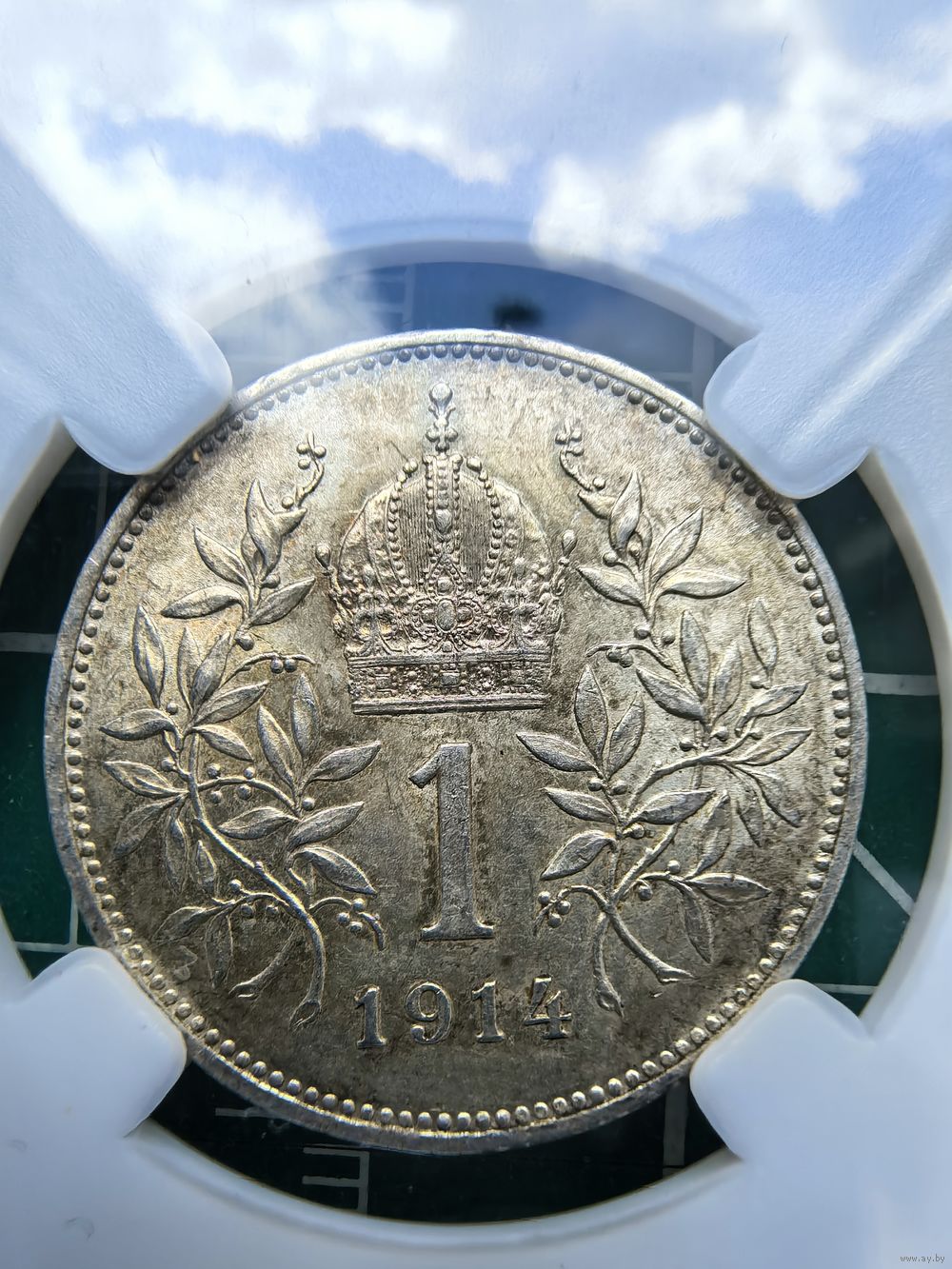 1 крона 1914 в слабе DNC ms 66.