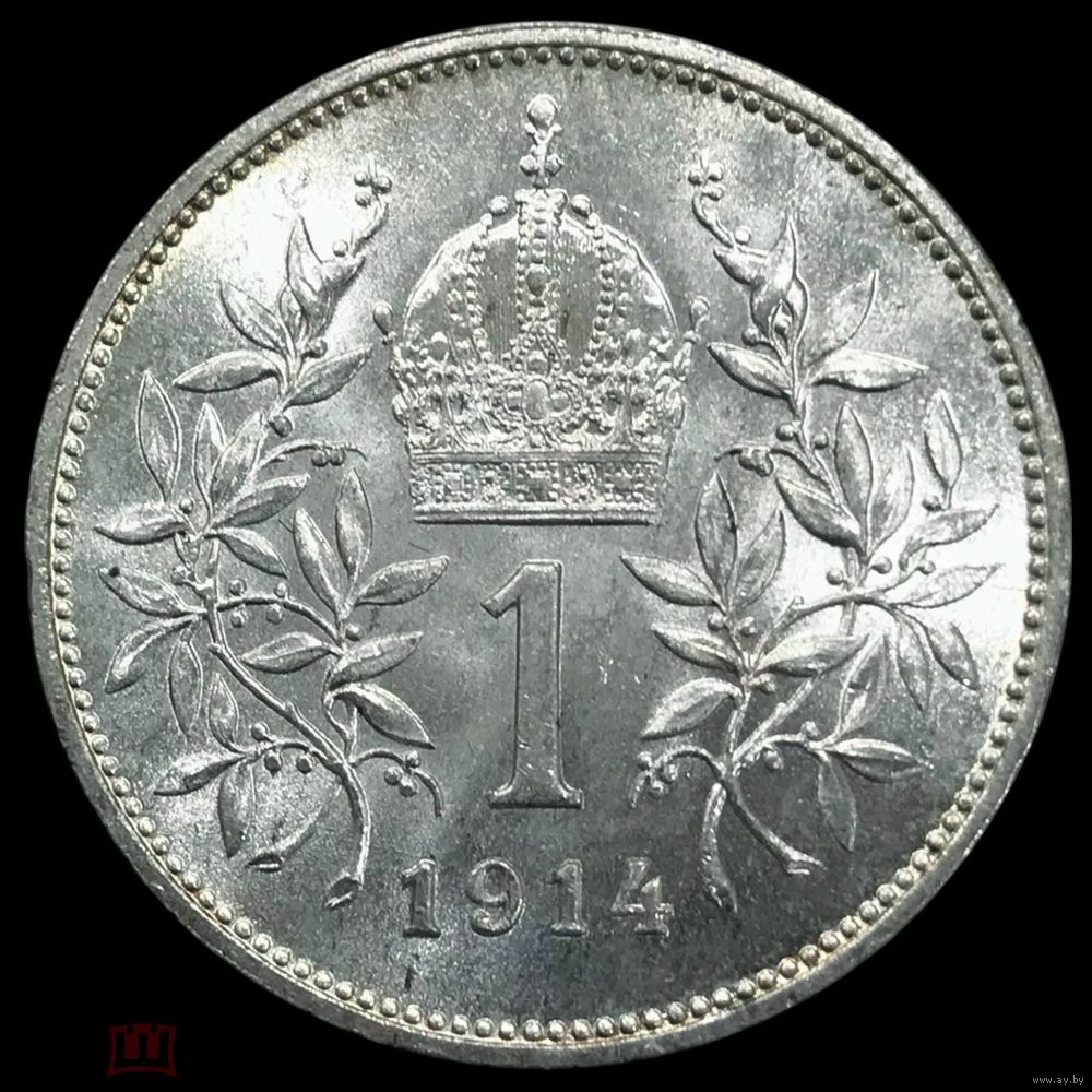 1 крона 1914 Австро-Венгрия! Лёгкая патина! Ещё шикарнее!