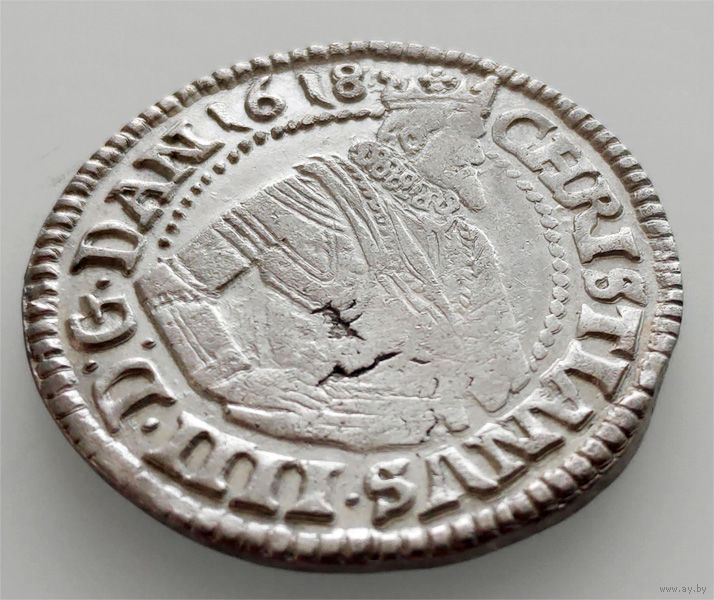 Ав - поясной портрет короля Кристиана IV, Рв - номинал над овальным щитом.