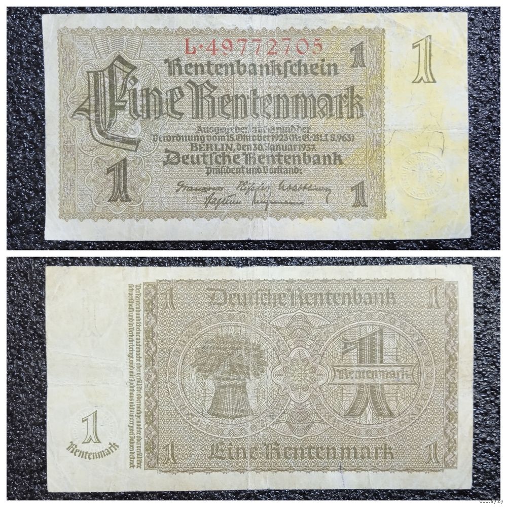 1 марка рент Германия 1937 г.
