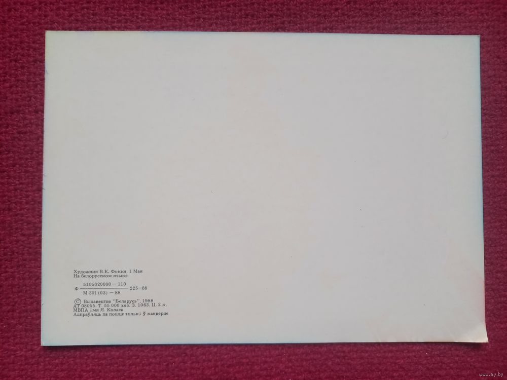 1 Мая! Белорусская открытка. Фокин 1988 г. Чистая.
