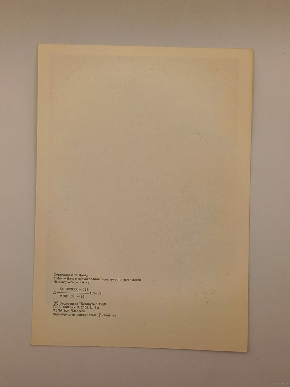 1 Мая! День международной солидарности трудящихся. Белорусская открытка. Дрозд 1989 г. Чистая.
