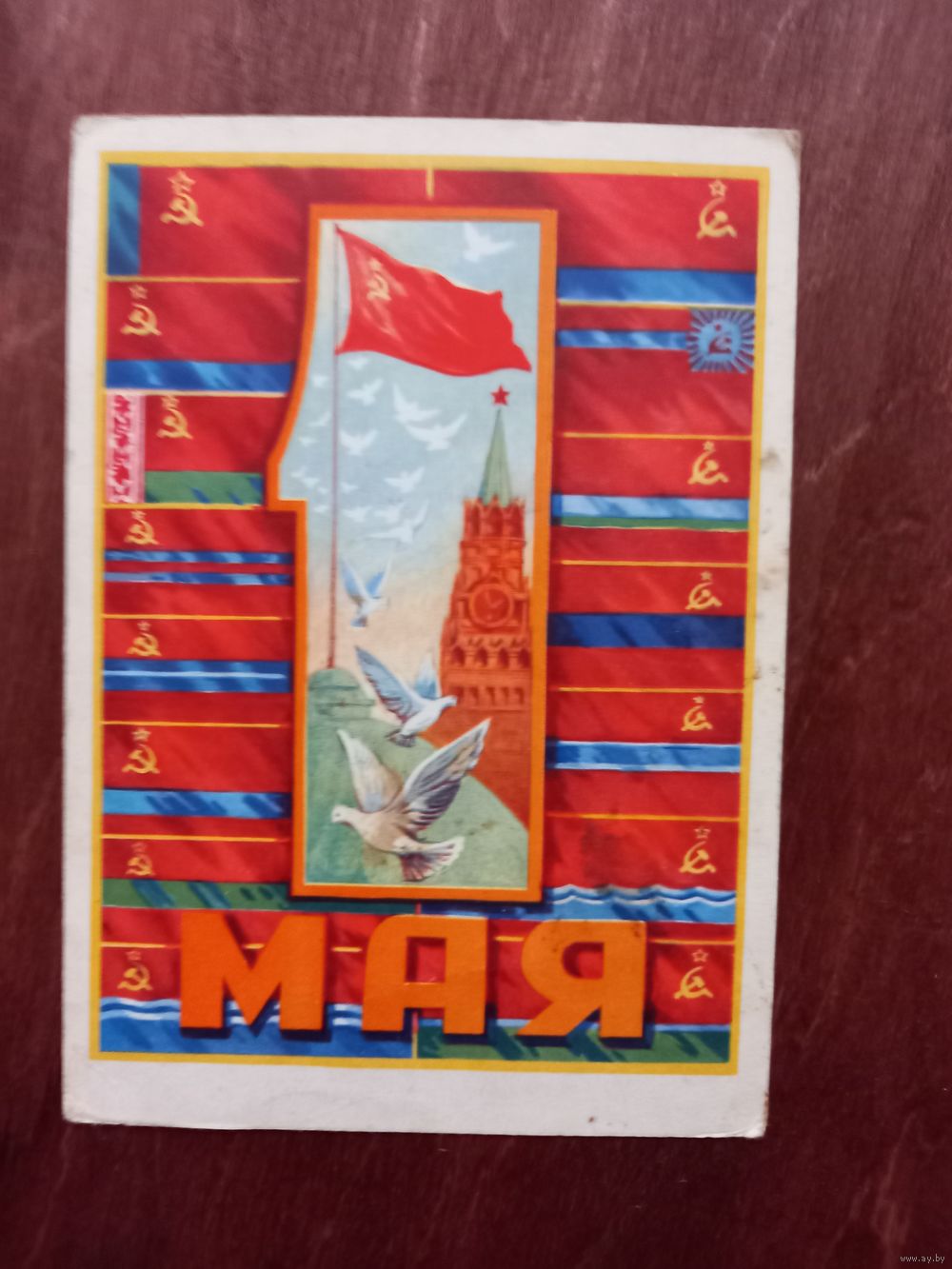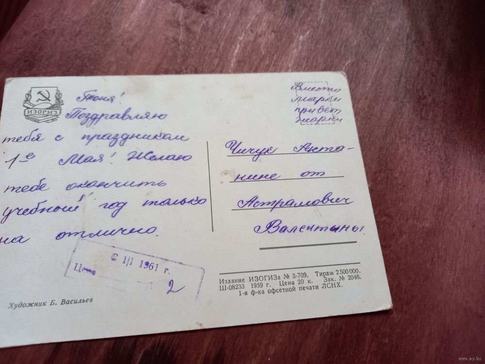 1 мая открытка 1959 Васильевич, штамп "цена с 1.01.1961 2 коп" 2