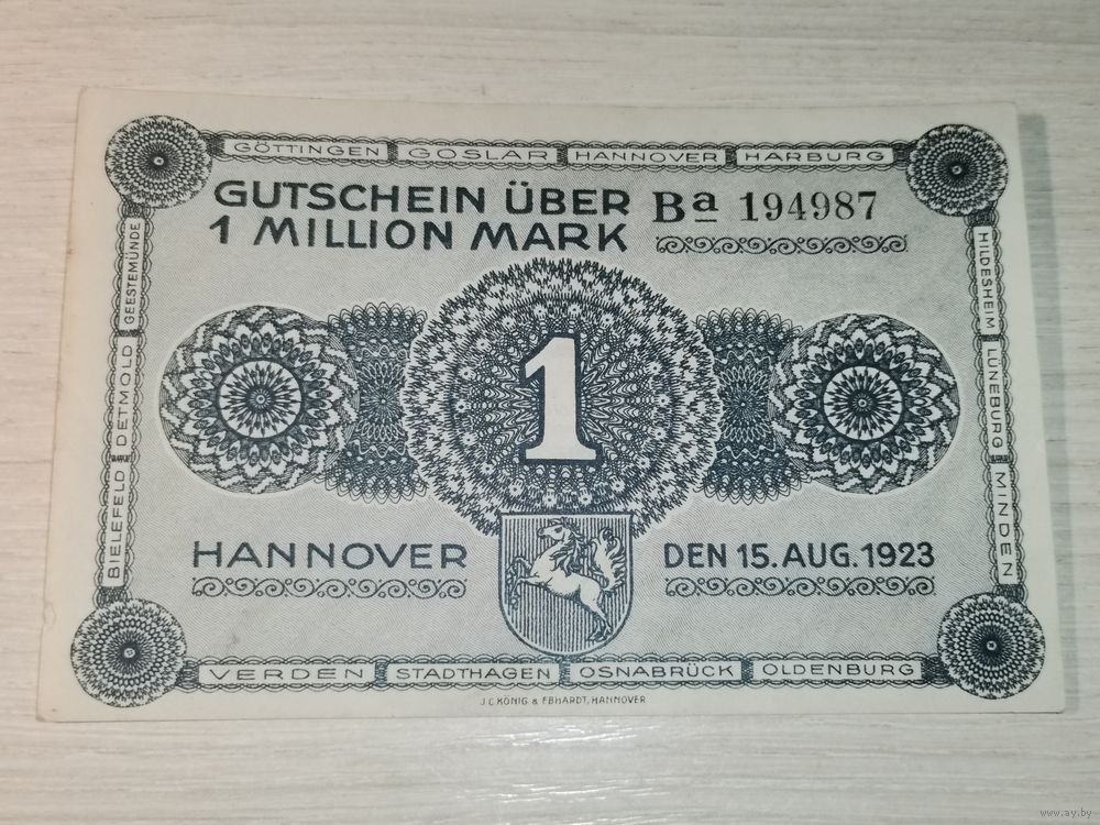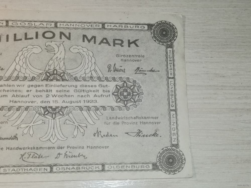 1 миллион марок 1923 года, Ганновер.