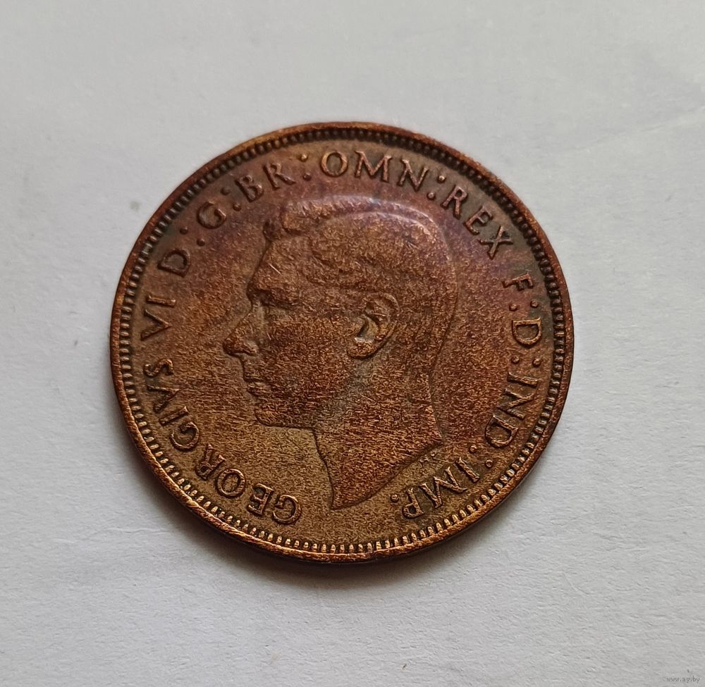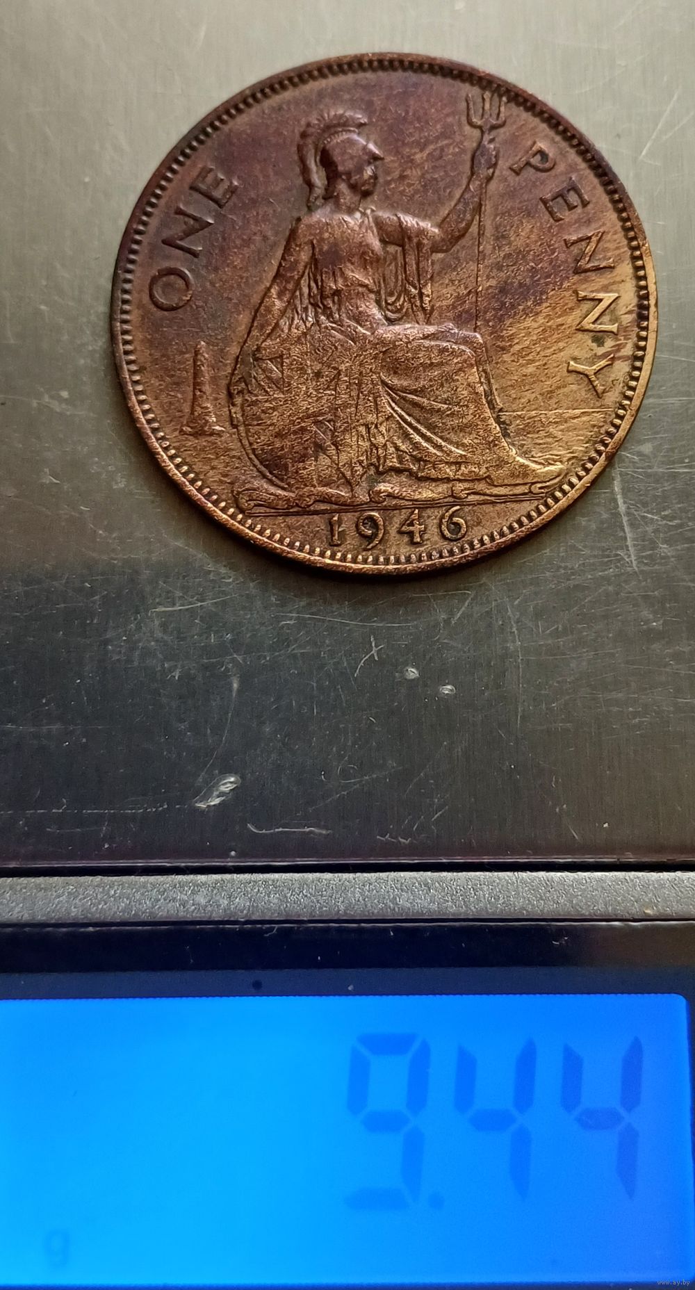 1 пенни, 1946г, бронза. Великобритания.Король Георг VI. Не чищена.