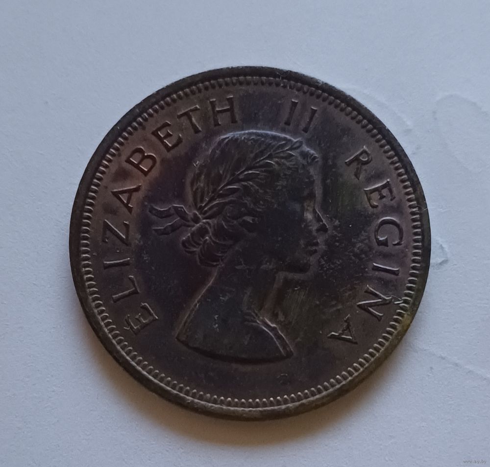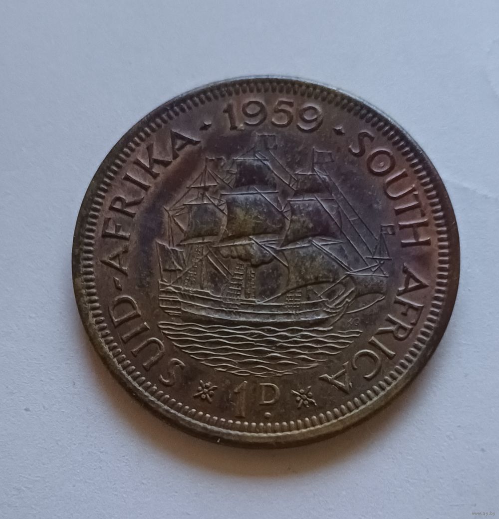 1 пенни, 1959 г, бронза.Южноафриканский фунт. Королева Елизавета II (1953 - 1960).Не чищена.