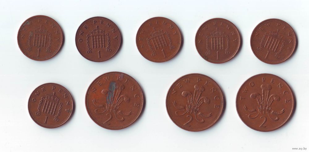 1 пенни 1971 (2), 1973, 1979, 1988, 1989