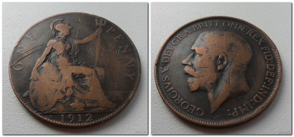 1 пенни Великобритания 1912 г.в. KM# 810 PENNY, из коллекции