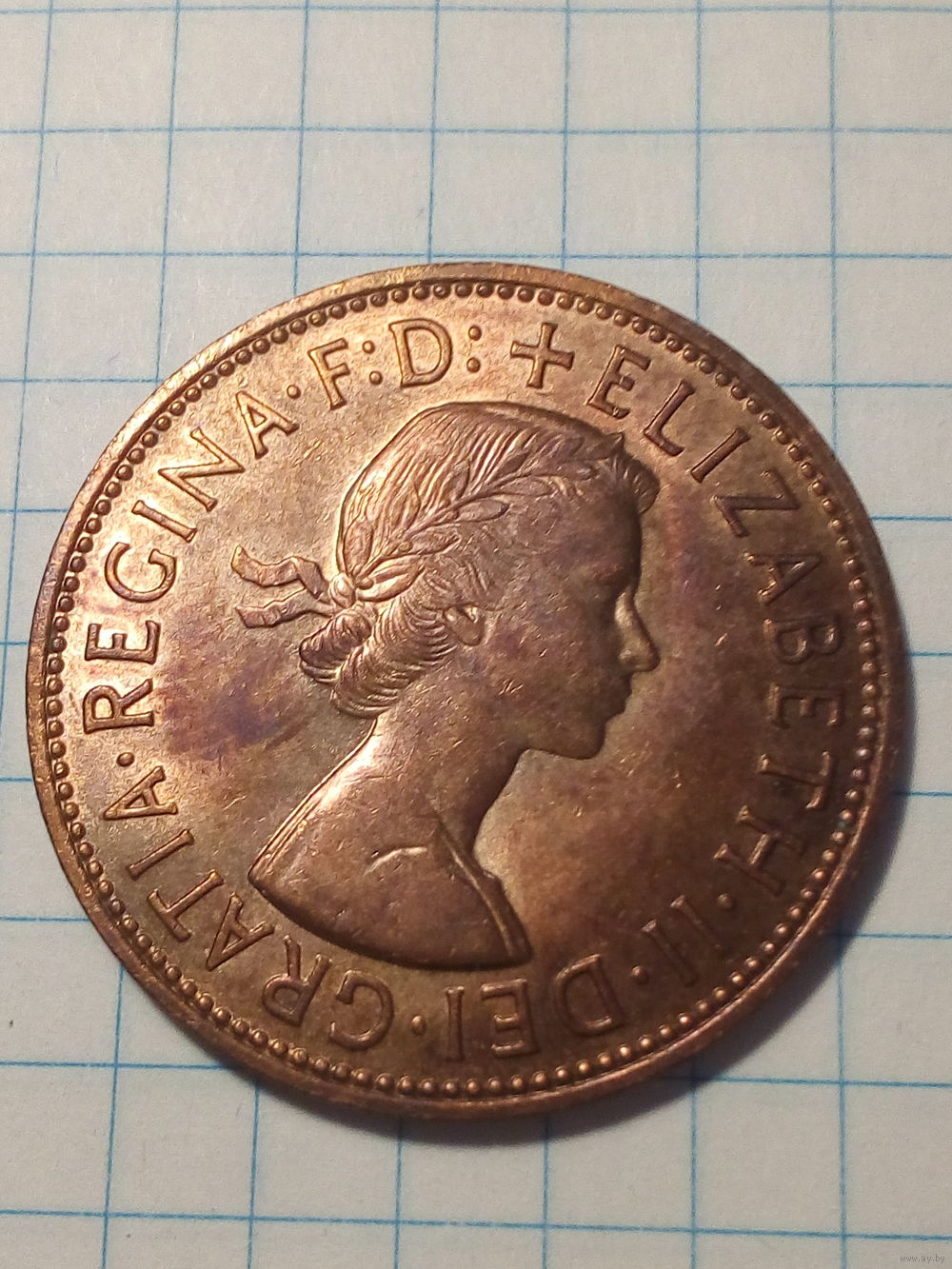 1 пенни Великобритания 1966 год.