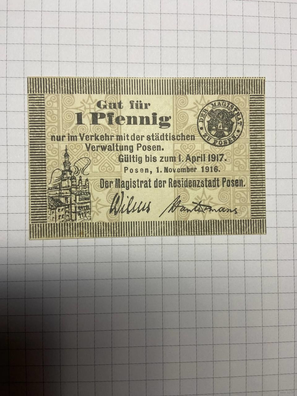 1 пфениг (нотгельды) г. Германия.-2012