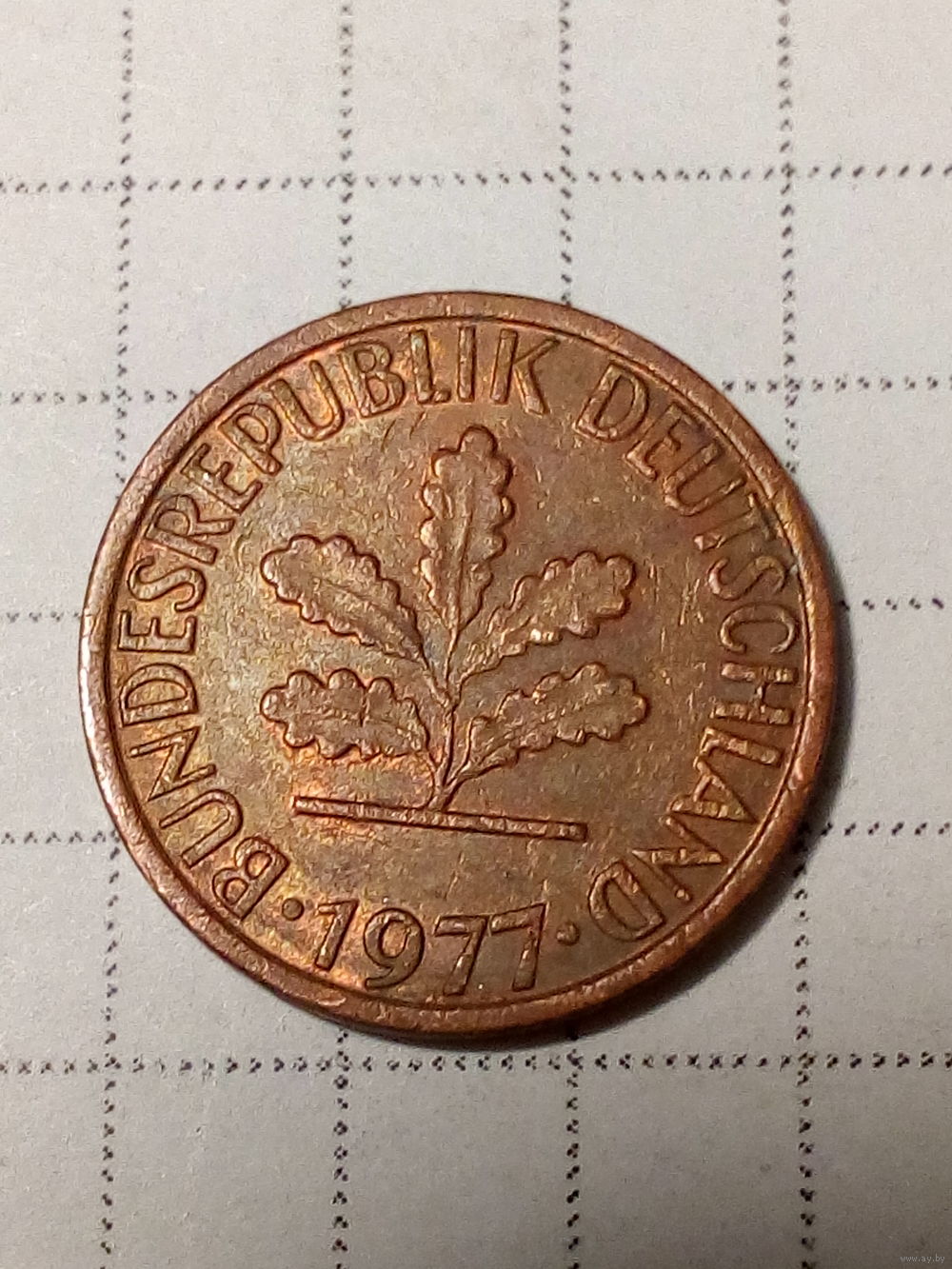 1 пфенниг ФРГ 1977 F год