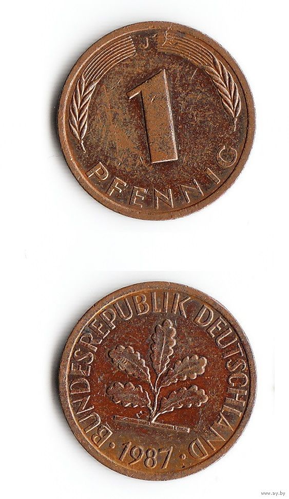 1 пфенниг Германия 1987 года(J)