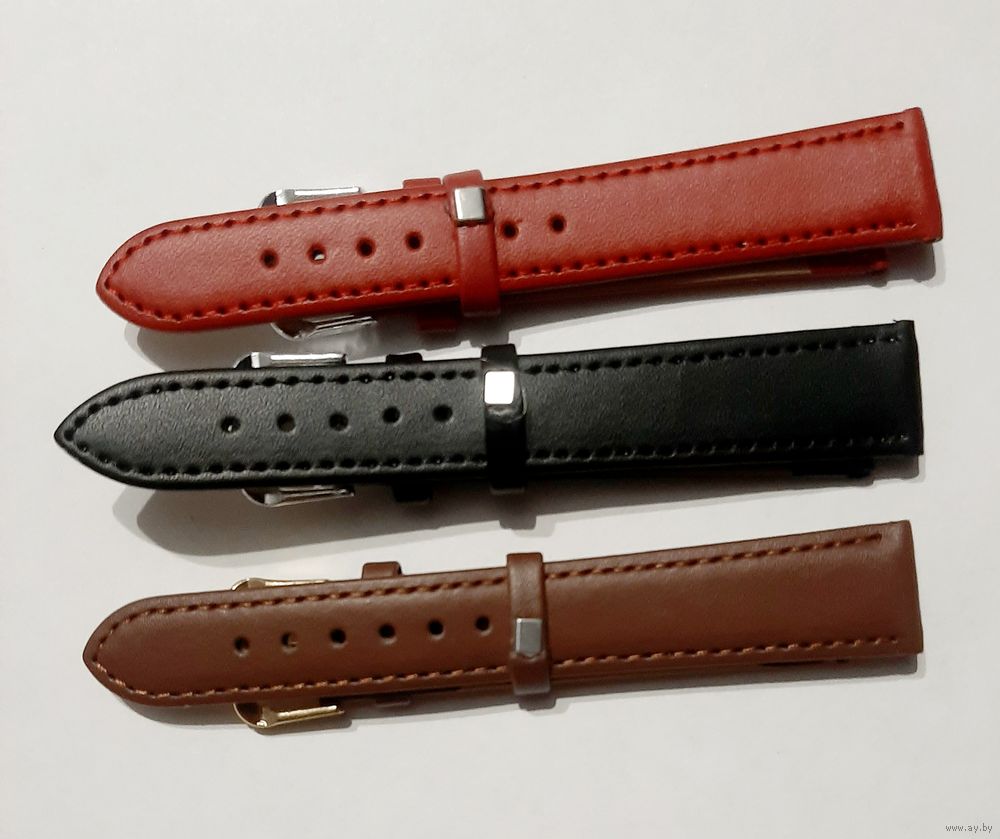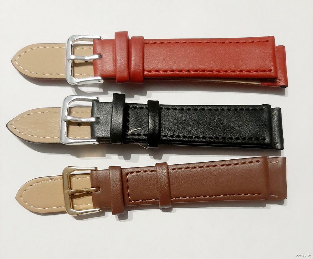 Ремешок 5р/1шт. 18мм для часов, в упаковке. Черный коричневый и красивый красный.Кожзам отличного качества. 6р/1шт. Застёжка жёлтого или белого цвета. Длина длинной части по габаритам-11,5см. От края-крепления до последней дырочки-9,2см. Длина короткой части от края-крепления до начала пряжки-7,5см.; с пряжкой-8.5см. Ширина пряжки в месте соединения ремешка-16мм. Есть ещё и чёрный. По 3 штуки. Могу выслать Европочтой или обычной почтой наложенным платежом.