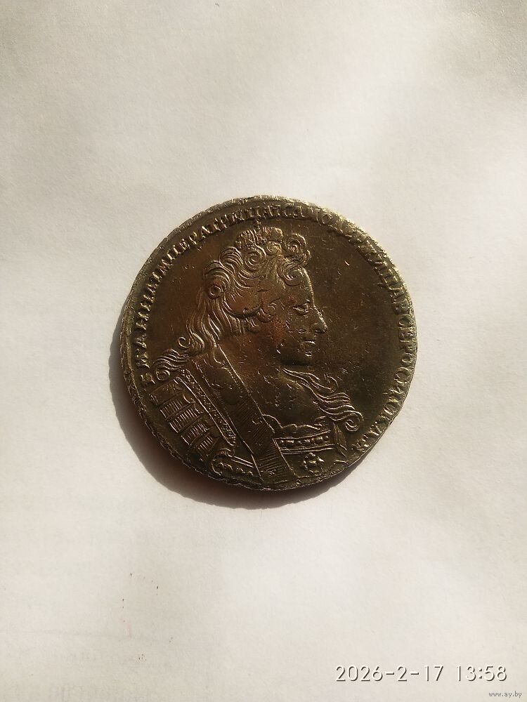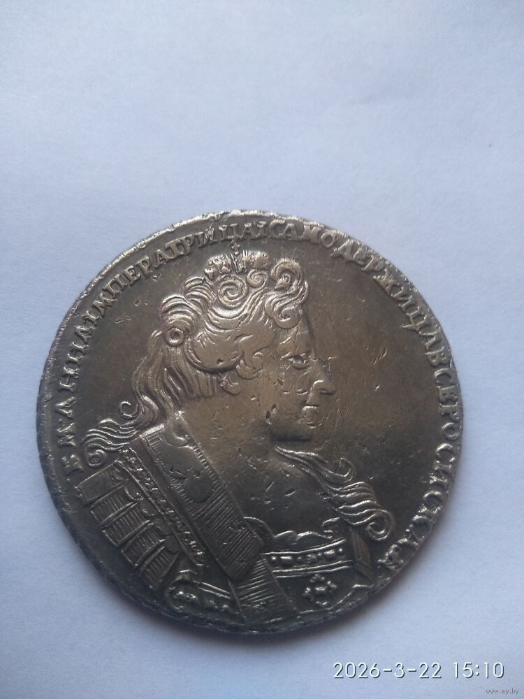 Аверс В центре профильный портрет вправо императрицы Анны Иоанновны. Вокруг портрета круговая надпись: «БМ АННА IМПЕРАТРИЦА IСАМОДЕРЖИЦА ВСЕ РОСИСКАЯ».