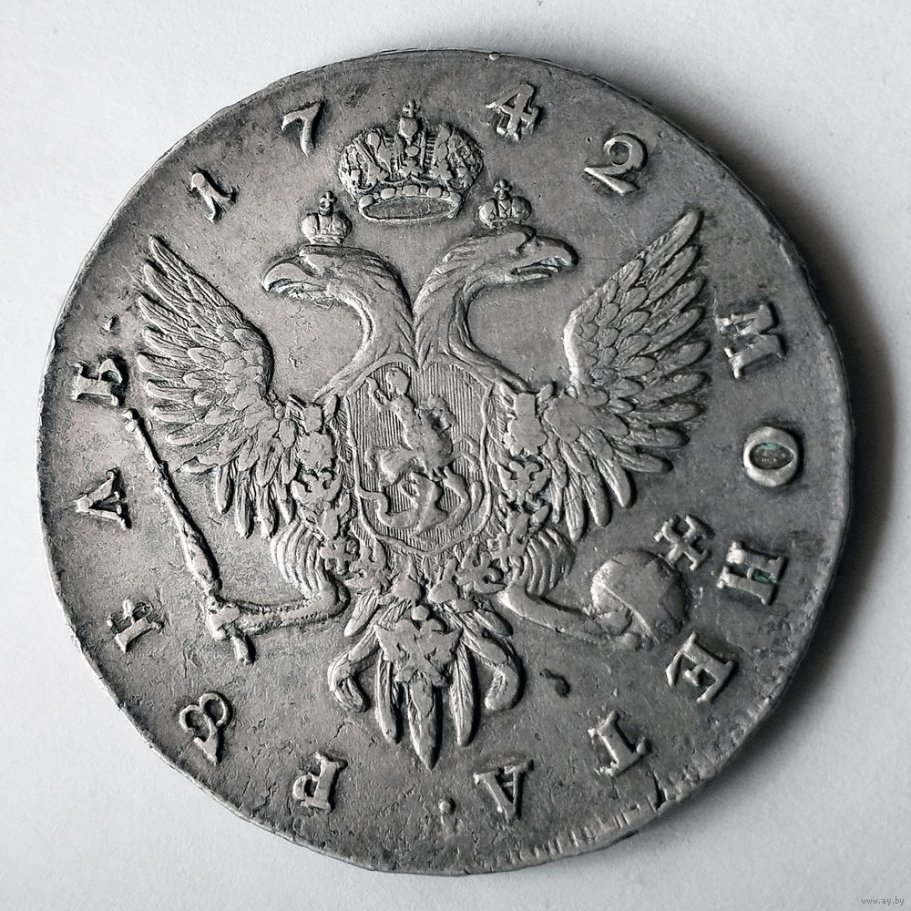 1 рубль. 1742 год. СПБ. Остатки блеска.