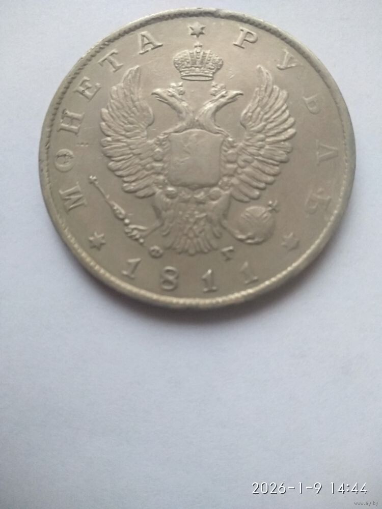 Аверс: в центре Малый Государственный Герб Российской империи, над императорской короной шестиконечная звезда, под левой и правой лапами орла инициалы минцмейстера «ФГ» (Федор Гельман), ниже год выпуска «1811» слева и справа от него шестиконечные звезды, слева по краю монеты надпись «МОНЕТА», справа по краю указан номинал «РУБЛЬ», вдоль края монеты ободок из точек.