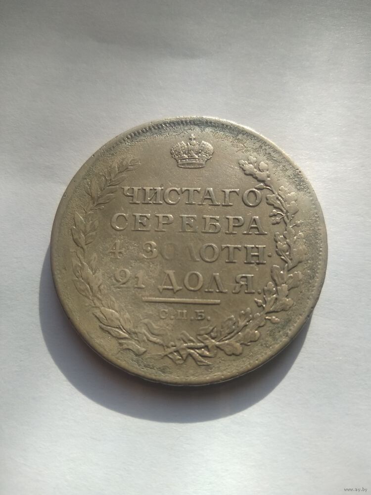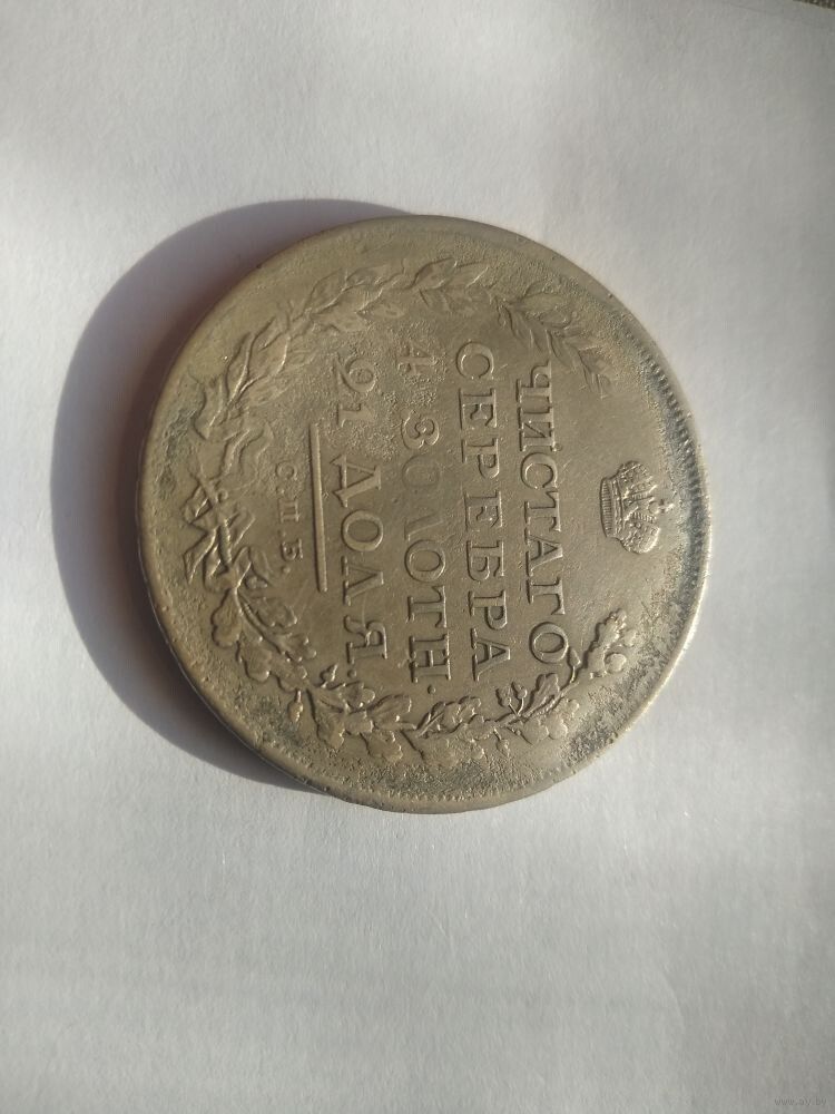 Реверс: вдоль края монеты зубчатый ободок, в середине вверху императорская корона, под ней надпись «ЧИСТОГО», ниже слово «СЕРЕБРА», под ним «4 ЗОЛОТН.» (4 золотника), ниже «21 ДОЛЯ.». Слева вдоль края лавровая ветвь, справа дубовая, внизу ветви соединяются и перевязаны лентой, над ней обозначение Санкт-Петербургского монетного двора «С.П.Б.», выше него прямая черта.