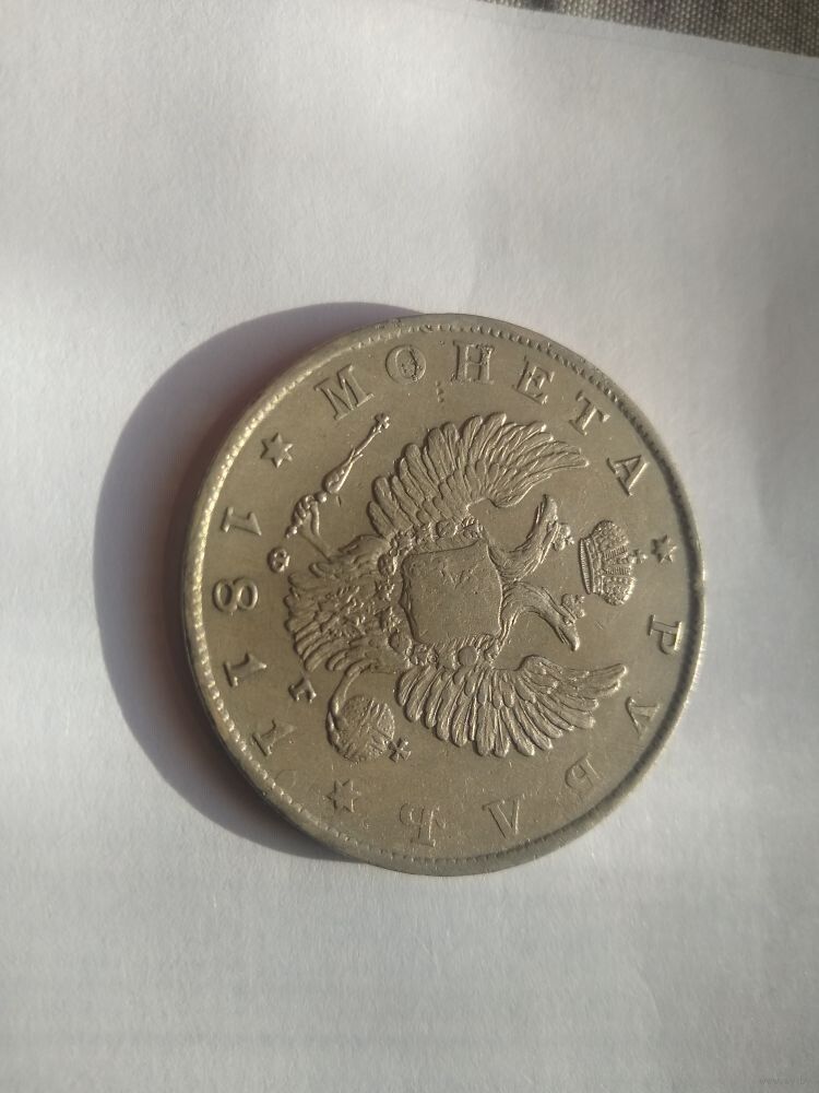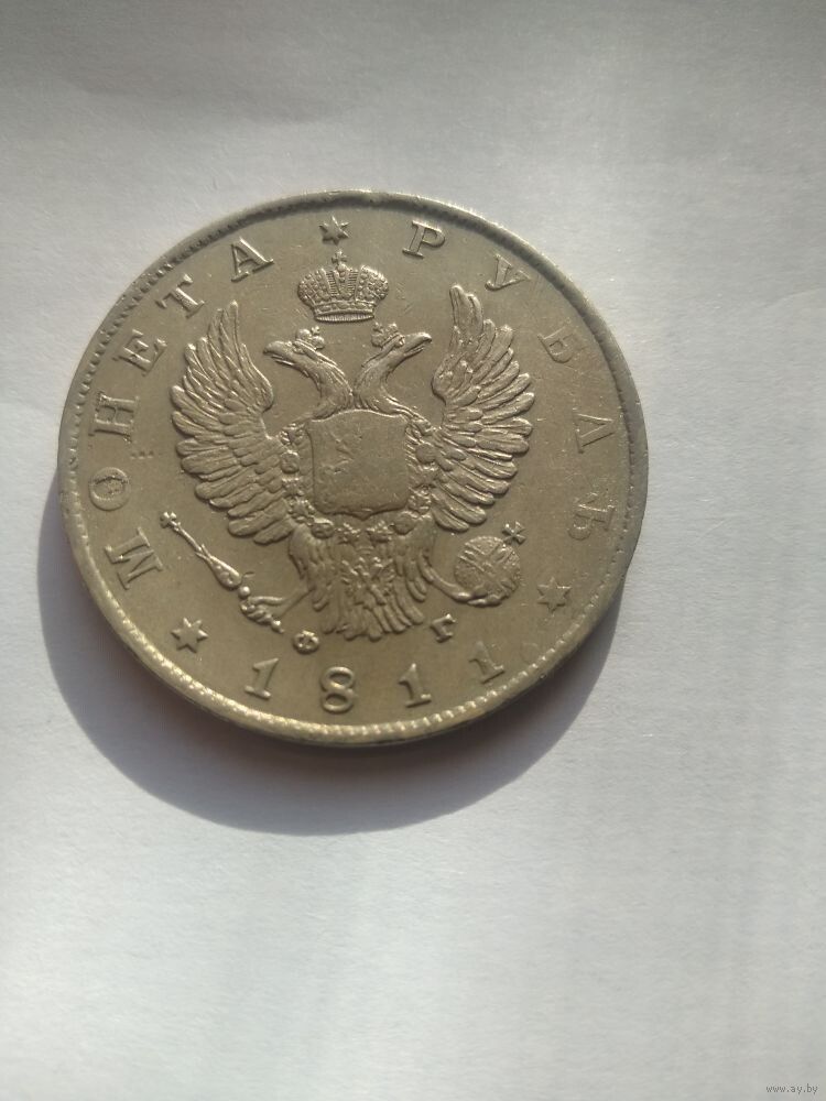 Аверс: в центре Малый Государственный Герб Российской империи, над императорской короной шестиконечная звезда, под левой и правой лапами орла инициалы минцмейстера «ФГ» (Федор Гельман), ниже год выпуска «1811» слева и справа от него шестиконечные звезды, слева по краю монеты надпись «МОНЕТА», справа по краю указан номинал «РУБЛЬ», вдоль края монеты ободок из точек.