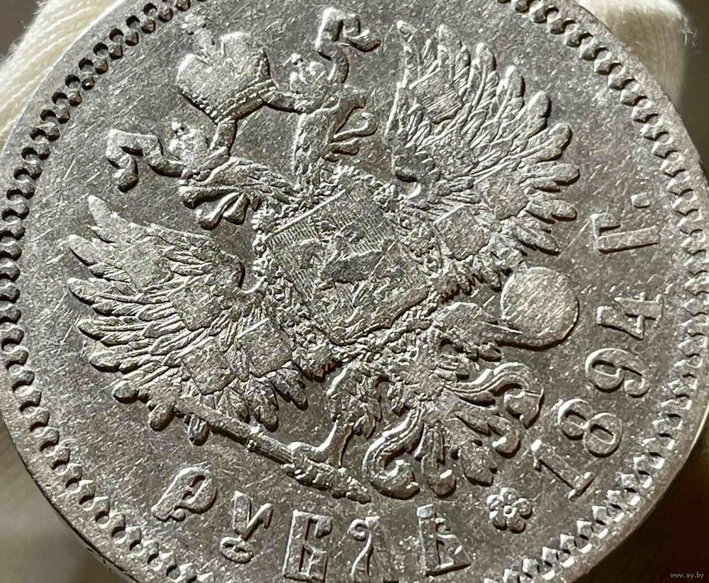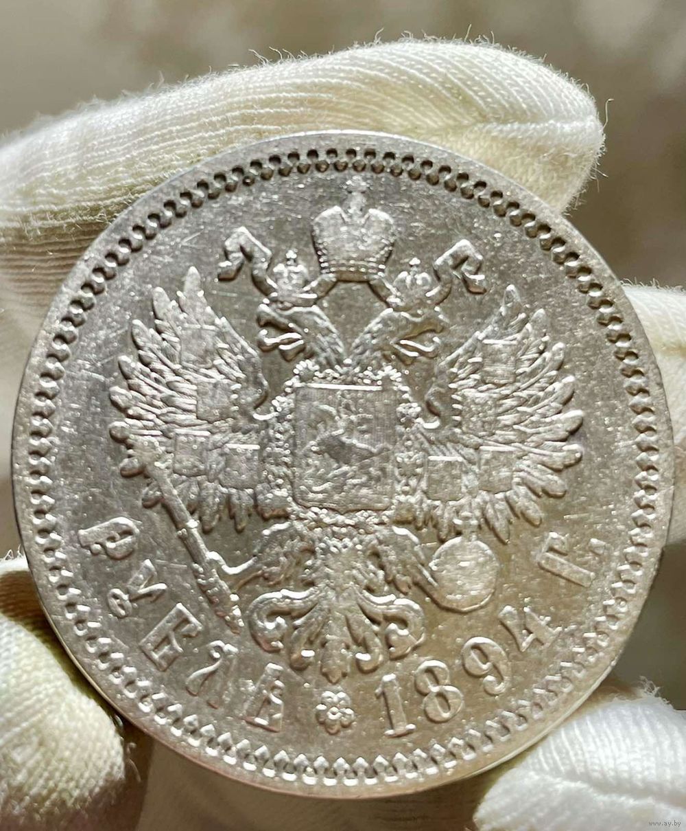 Аверс: в середине Малый Государственный Герб Российской империи, под ним вдоль края монеты, разделенные розеткой, номинал «РУБЛЬ» и год выпуска монеты «1894 Г.».