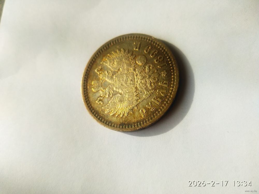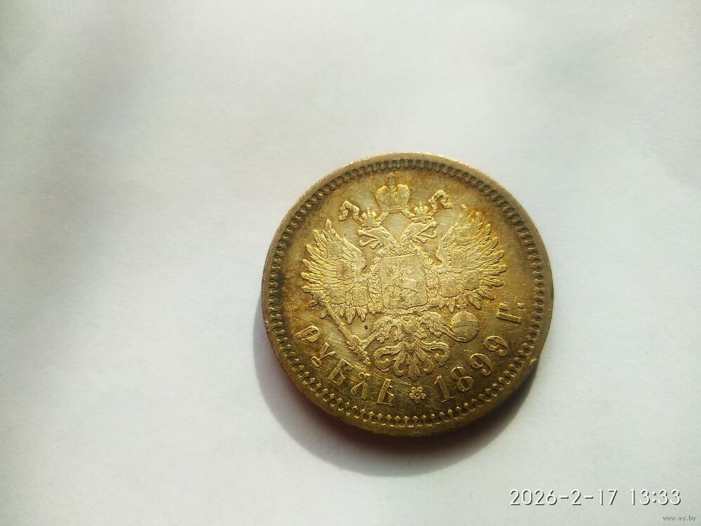 Реверс В центре изображен Малый Государственный Герб Российской империи — двуглавый орёл, головы которого увенчаны двумя коронами, третья, большая корона над ними. Все они соединены орденской лентой ордена Св. Апостола Андрея Первозванного. На груди орла расположен Московский герб, в щите изображен Георгий Победоносец с копьем поражающий дракона. Вокруг щита цепь ордена Св. Апостола Андрея Первозванного. На крыльях изображены гербы: Царства Казанского, Польского, Херсонеса Таврического, Астраханского, Сибирского, Грузинского и герб соединенных княжеств Киевского, Новгородского и Владимирского — по 4 на каждое крыло. В правой лапе орла — скипетр, в левой — держава. Под ним слева направо изображены: номинал — надпись «РУБЛЬ», цветочная розетка и дата выпуска «1899 Г.». По окружности канта имеются рельефные элементы, выполненные в виде зубцов.Каталожные номера