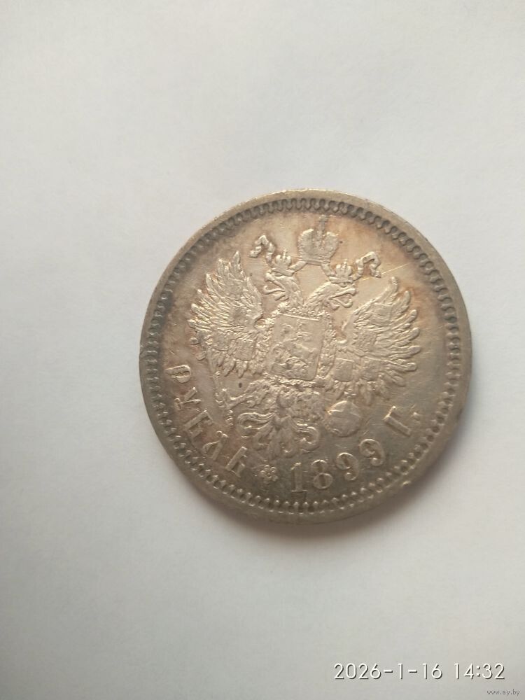РеверсВ центре изображен Малый Государственный Герб Российской империи — двуглавый орёл, головы которого увенчаны двумя коронами, третья, большая корона над ними. Все они соединены орденской лентой ордена Св. Апостола Андрея Первозванного. На груди орла расположен Московский герб, в щите изображен Георгий Победоносец с копьем поражающий дракона. Вокруг щита цепь ордена Св. Апостола Андрея Первозванного. На крыльях изображены гербы: Царства Казанского, Польского, Херсонеса Таврического, Астраханского, Сибирского, Грузинского и герб соединенных княжеств Киевского, Новгородского и Владимирского — по 4 на каждое крыло. В правой лапе орла — скипетр, в левой — держава. Под ним слева направо изображены: номинал — надпись «РУБЛЬ», цветочная розетка и дата выпуска «1899 Г.». По окружности канта имеются рельефные элементы, выполненные в виде зубцов.Каталожные номера